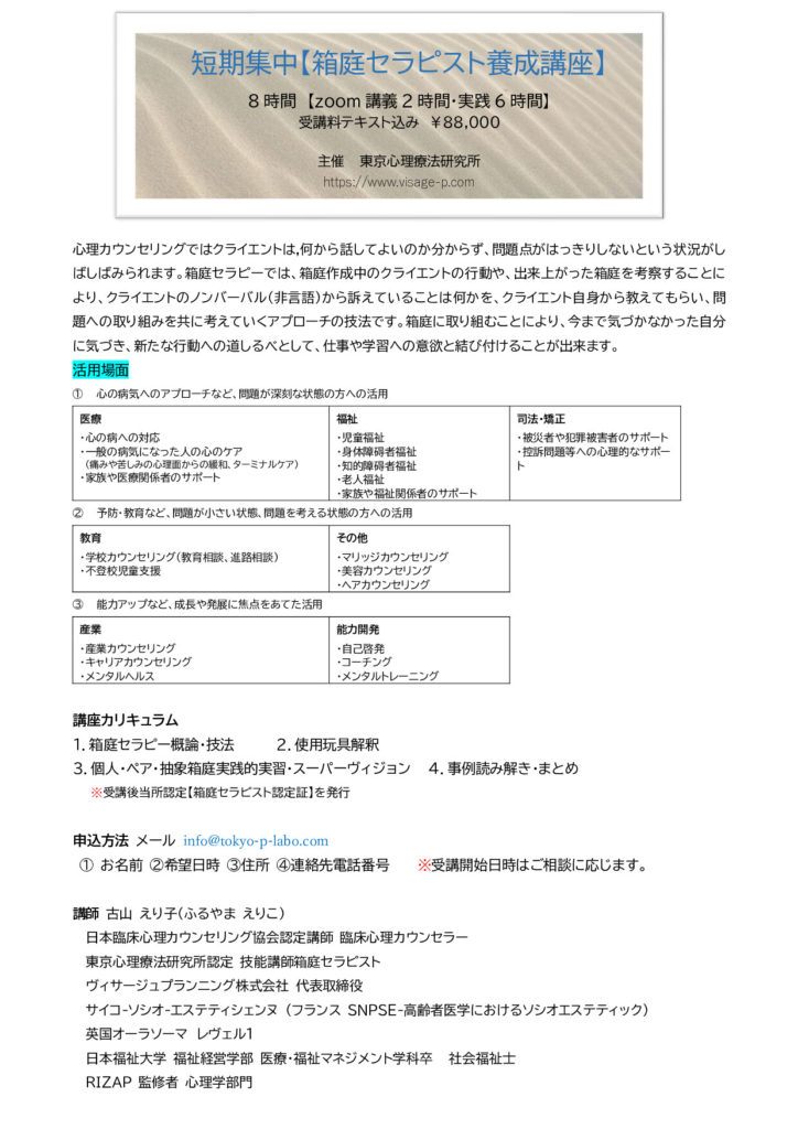 箱庭セラピー養成技能セラピスト (東京心理療法研究所)